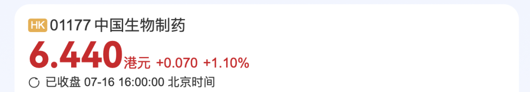 但目前来看,市场对此次收购的积极反应显著。截至7月16日收盘,中国生物制药报6.44港元/股,当日涨幅达1.1%。